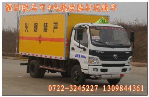 四、福田歐馬可4噸爆破器材運(yùn)輸車:底盤型號(hào):BJ1089VFJEA-F3,發(fā)動(dòng)機(jī)型號(hào):ISF3.8s4141,