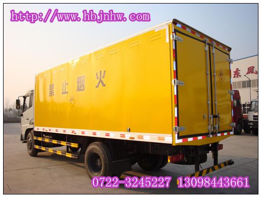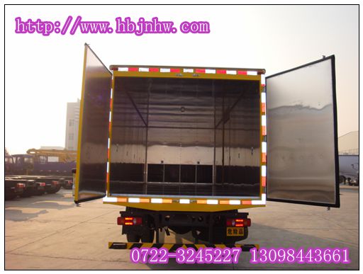東風(fēng)天錦9.9噸爆破器材運(yùn)輸車廂體制作說明:此車型廂體為雙層金屬骨架結(jié)構(gòu),外部為冷軋鋼板,內(nèi)部采用鋁合金板蒙皮,夾層為隔熱阻燃材料填充,設(shè)置對(duì)開門,廂體內(nèi)部做防靜電處理,廂體底部與廂體前部鋪有阻燃導(dǎo)靜電膠板,并與底盤等電位連接,通過車輛后端的導(dǎo)靜電裝置與大地相連,可防止靜電火花的產(chǎn)生和車輛靜電及時(shí)釋放,提高爆破器材運(yùn)輸車的安全性,廂體內(nèi)部前面和側(cè)面裝有固定拉環(huán)與捆綁帶使用防止貨物移動(dòng),保證安全。