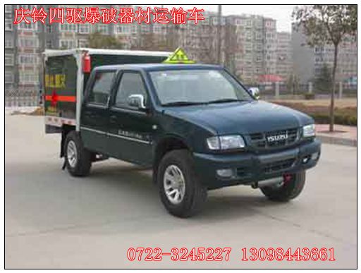 五、慶鈴皮卡小型雙排座爆破器材運輸車(兩驅/四驅):慶鈴皮卡四驅爆破器材運輸車采用的是慶鈴輕型汽車底盤QL10307GDSB型四驅底盤改裝而成,配以五十鈴的4JB1-TCT 排量2771ml,功率為70kw;貨廂尺寸為:1430×1605×1060。整車具有體積小,運輸便利,四驅的動力強勁等特點,特別適用于山區(qū)路段運輸雷管炸藥及爆破器材等危險品。