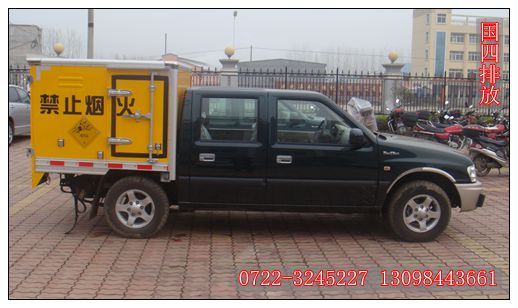 四、江鈴皮卡小型雙排座爆破器材運輸車(兩驅/四驅):江鈴皮卡四驅爆破器材運輸車采用的是江鈴寶典的皮卡四驅車底盤改裝而成,配以江鈴JX493ZQ5A 90馬力柴油發(fā)動機,貨廂尺寸為:1430×1605×1060,容積為2.4立方。江鈴四驅皮卡爆破器材整車具有體積小,運輸便利,四驅的動力強勁,特別適合山區(qū)行駛,是山區(qū)煙花爆竹生產(chǎn)廠、爆破公司、各礦區(qū)運送爆破物品和危險品的理想車型。